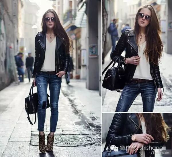 皮衣+修身长裤