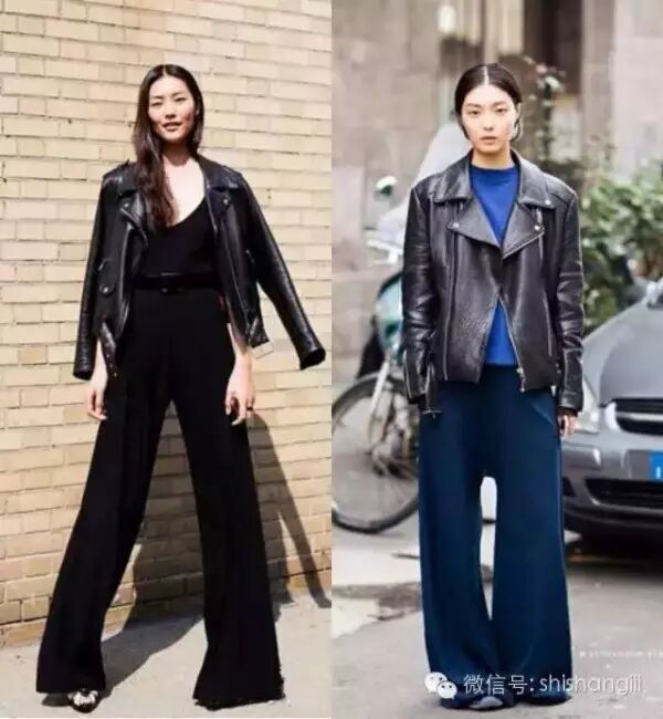皮衣+阔脚裤