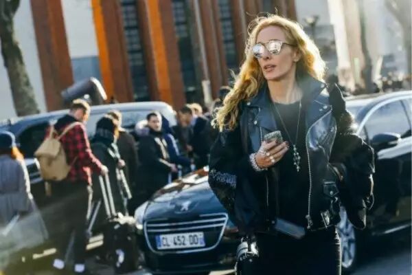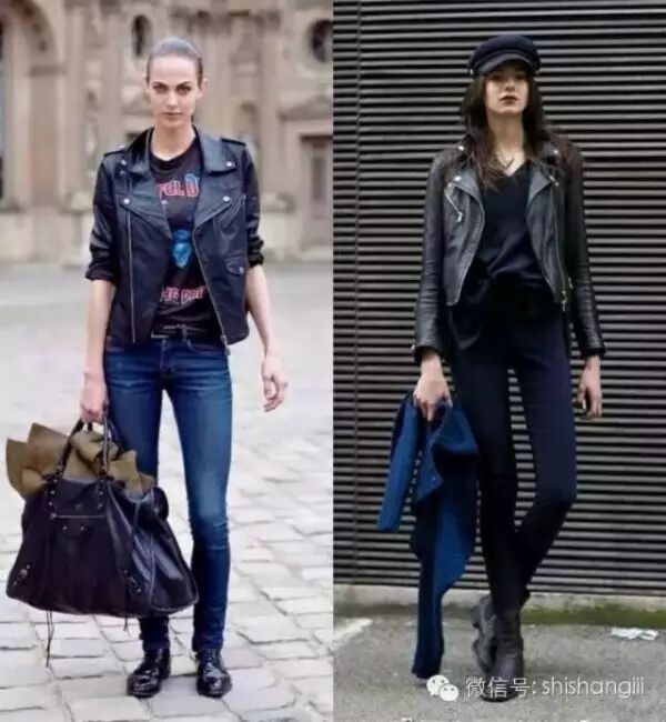 大家注意到今天发的机车皮衣多是黑色。那是基于实用性考虑的,因为黑色最百搭。亮色的皮衣虽然更有存在感,比如粉红色皮衣,可你不会到40岁还穿着它。颜色的挑选最重要的是保证无论在什么年代都能保有好看度和时髦度,黑色机车皮是最经得起时间考验的。