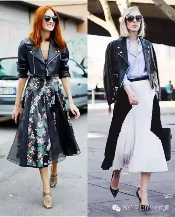 皮衣+半身裙