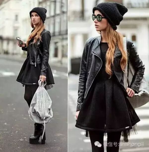 皮衣+连衣裙