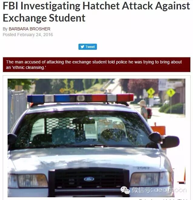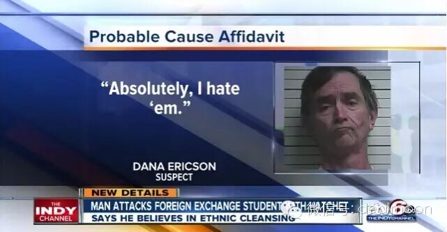 美国时间2月18日,在美国印第安纳州发生了一起恶意伤人事件。来自中国的交换生张悦(化名)被一名男子用斧头砍伤,嫌疑犯被警方逮捕后拒绝认罪。令人震惊的是,该犯罪者此前并不认识这位中国交换生和她所在的寄宿家庭,袭击的原因仅仅因为她不是白种人。