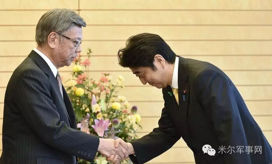 安倍向冲绳知事鞠躬