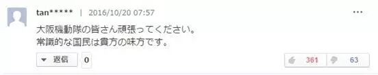“大阪机动队的大家伙,你们辛苦了,加油!具有良知的日本国民为你们撑腰!”