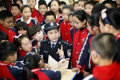 ▲资料图片:2017年4月14日,民警在衡水市新苑小学为学生们讲解国家安全相关知识。