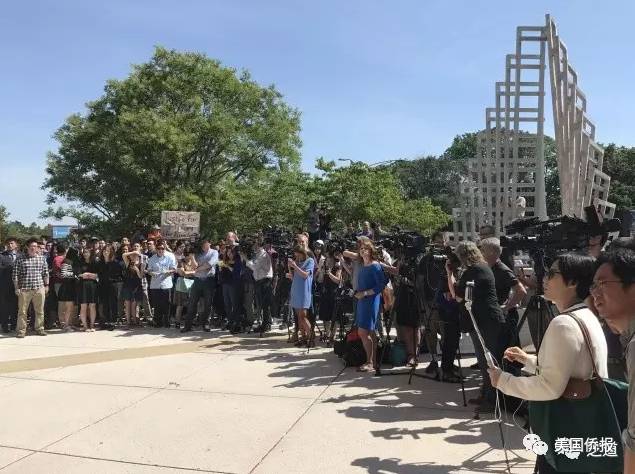 11时15分,章莹颖家人在伊利诺伊大学副校长凯勒、王志东律师以及学校志愿者的陪同下离开。