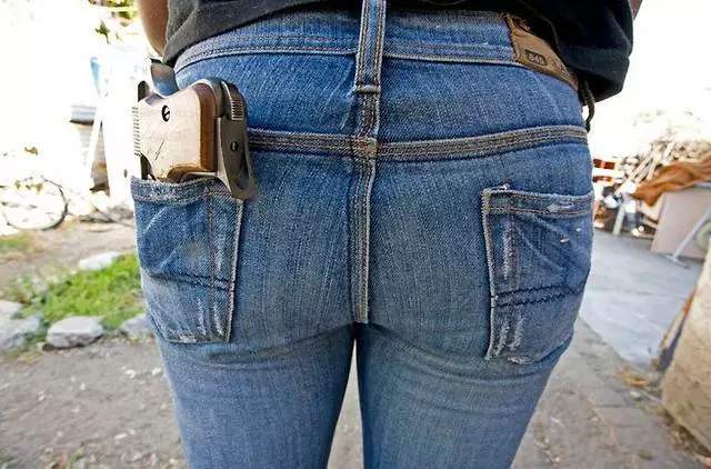 黑帮女士是习惯将枪藏在裤兜里防身的!