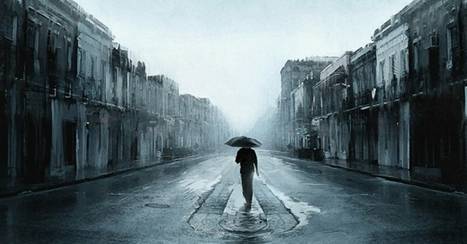 有一个傻子,低着头在雨中走,慢腾腾地,就那么在雨中走。