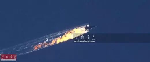 土耳其电视台拍摄的俄军苏-24M战机被导弹击中后的坠落视频截图。
