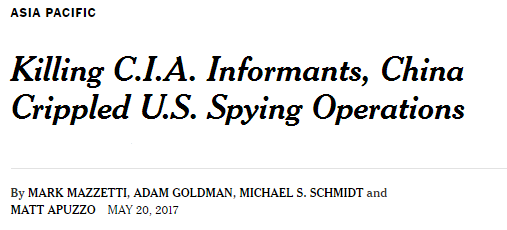 美国《纽约时报》21日报道称,中国政府破坏了美国在中国的情报搜集网络。