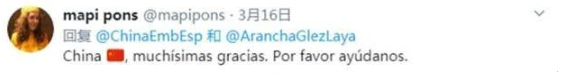 ·西班牙:在得知中国将为西班牙提供医疗物资的消息后,许多西班牙网友纷纷来到中国使馆的推特评论区,用自己的方式表达感谢。很多网友在评论区狂刷7遍“GRACIASChina”(谢谢中国)。